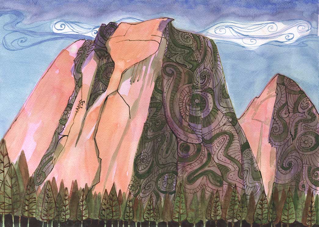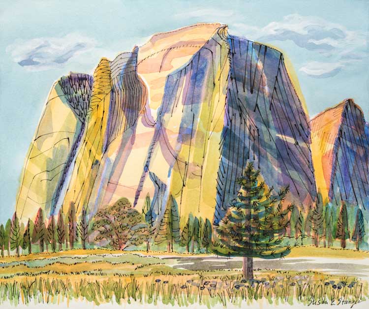 Across from El Capitan in Yosemite Valley, there’s an enormous rock that appears to be free-standing. I became somewhat obsessed with it and depicted it over and over.