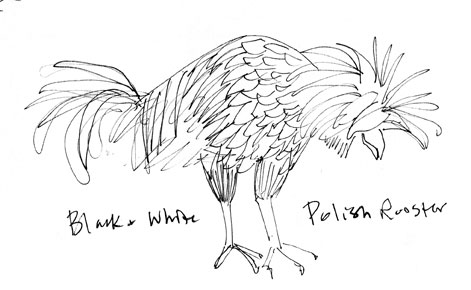 The Polish rooster looked kind of like a cocky Rod Stewart with long black and white feathers.