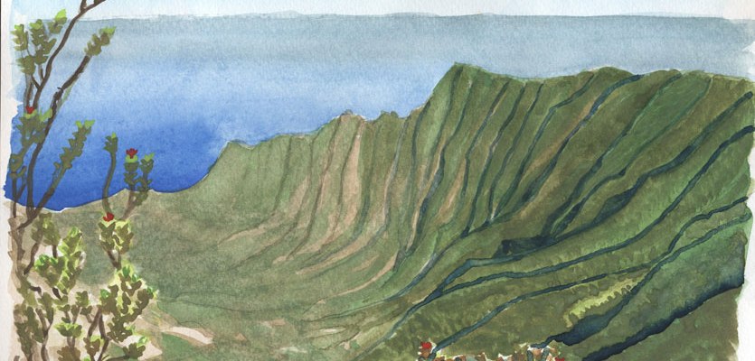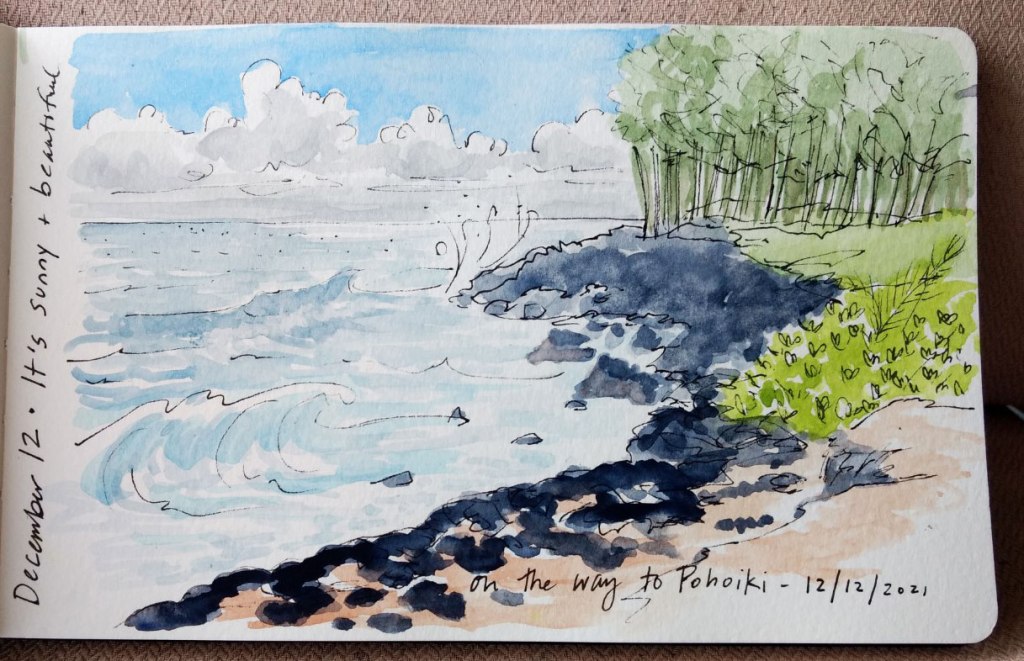 My previous post was from the first couple days of our six week sojourn in Hawaii. Here are more photos and sketches. Our first stop: the Big Island.