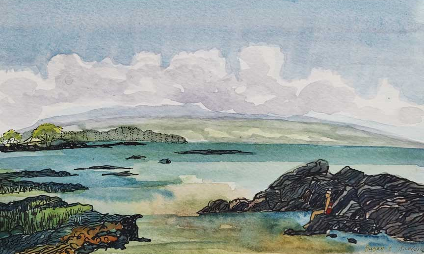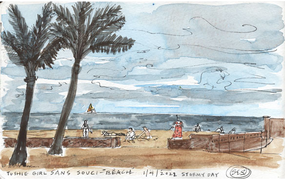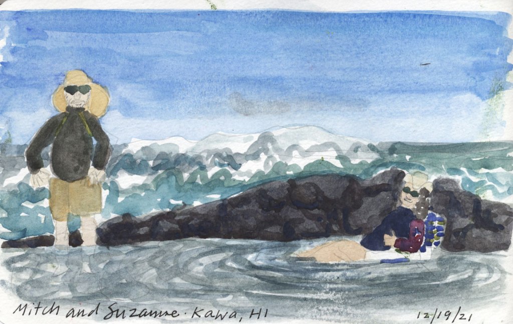 Plein air sketch of Mitch and Suzanne lounging in the tide pools of Kawa,