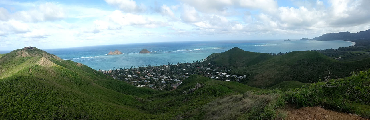 View of Lanikai, the Mokuluas and Waimanalo from pillbox hike