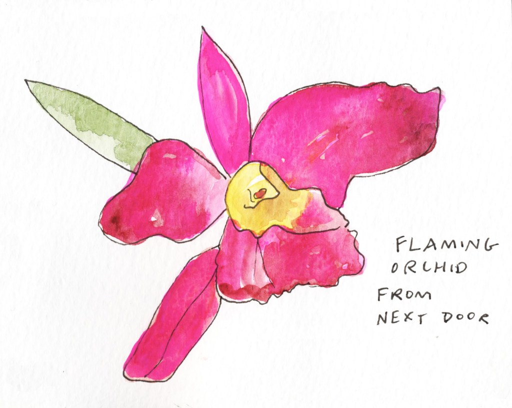 But I still wasn’t totally happy with the results. I decided to further simplify in an ink drawing, adding aquarelle pencils.