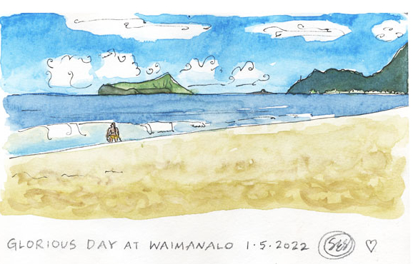 We spent the next month in Kailua and Waikiki. I had thought that December and January would be cool and rainy. To my surprise and delight, this year it was neither (with the exception of a few days around New Year’s). We were more social than we’d been for the last two years; catching up with old friends, hiking, mostly enjoying meals together outdoors.