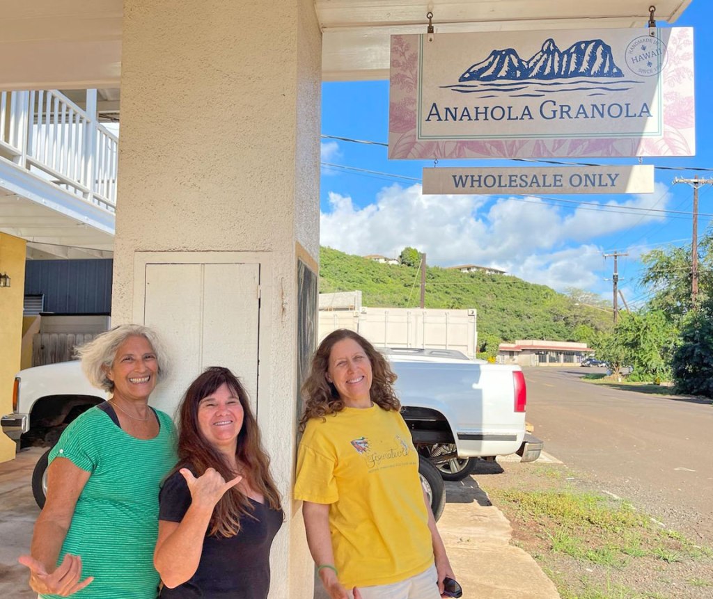 A quick stop at Anahola Granola headquarters in Hanapepe. This photo sent as an Aloha to the founder, our friend Becky who is healing from a badly broken leg.