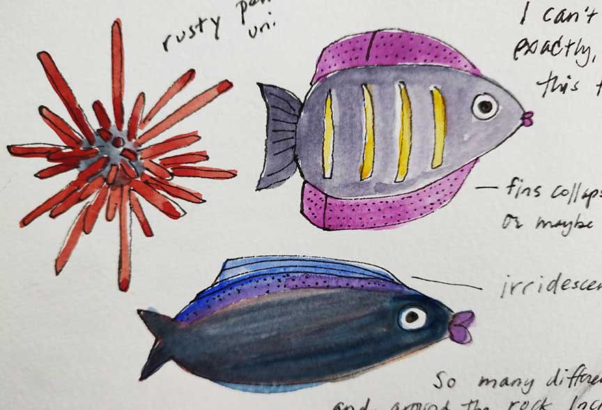 I wasn’t as obsessed with the smaller paintings I created at Richardson Beach Park, where we watched a turtle nibble on seaweed for a half hour. The snorkeling was pretty great there too.