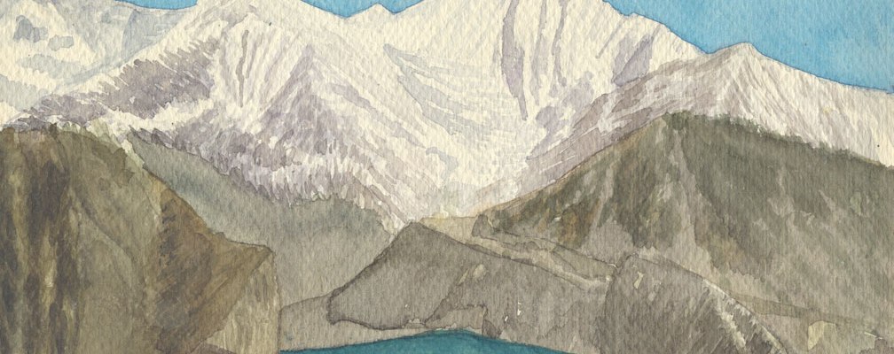 But the diamond I discovered was a painting I’d done when I traveled to SE Asia in the 80’s. Below is the piece I did of the Annapurnas in Nepal; the painting says Gangapurna. I remember creating it from a magical village called Manang. It looked more majestic than this, I assure you—those peaks are over 24,000 feet tall.