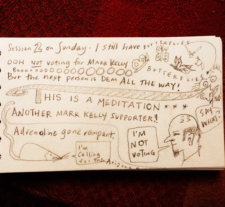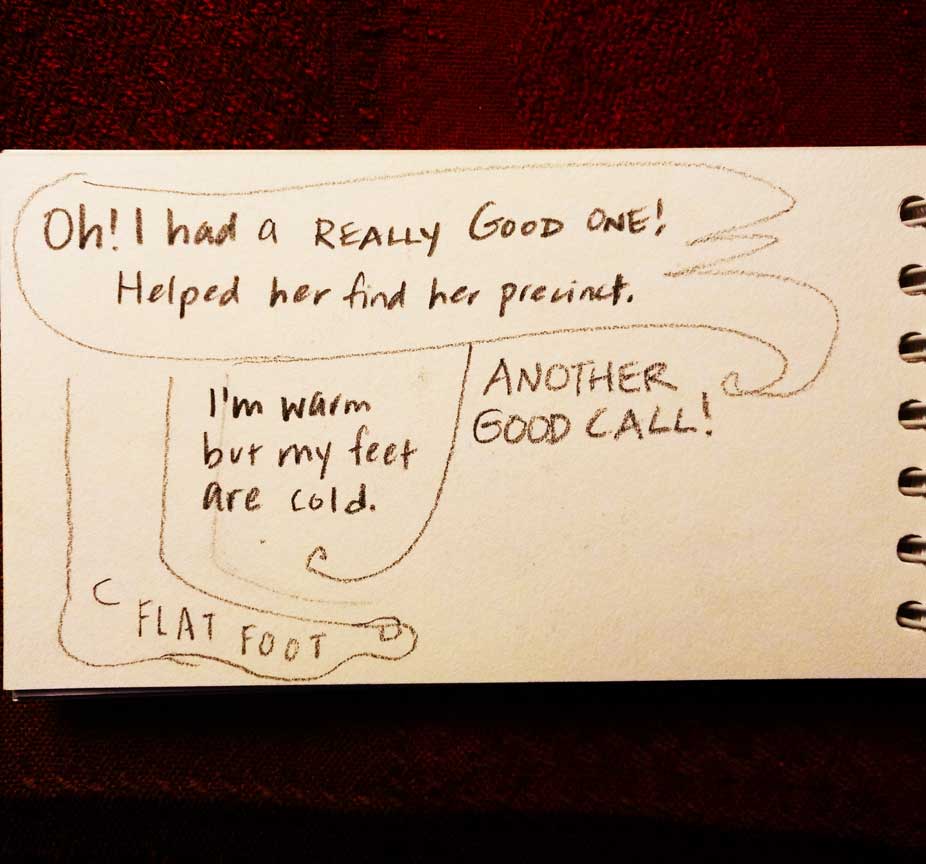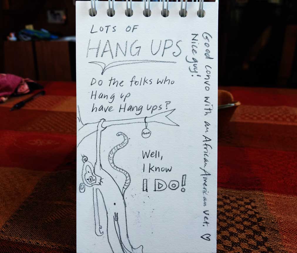 There are usually several minutes between the time someone hangs up and another answers; I tend to be jumpy and the adrenaline flows so, I doodle. They are pretty much stream of consciousness and include quotes from the folks I call. The one about Goth Girls I did afterward because it was so completely random and therefore, my favorite call of the weekend.