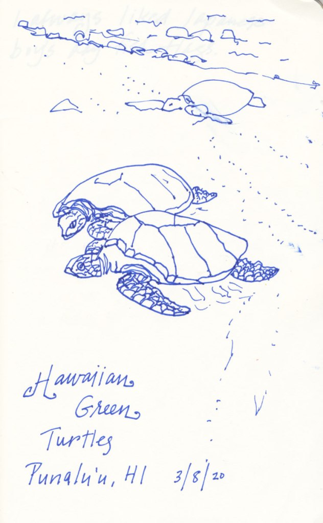 I wasn’t as obsessed with the smaller paintings I created at Richardson Beach Park, where we watched a turtle nibble on seaweed for a half hour. The snorkeling was pretty great there too.
